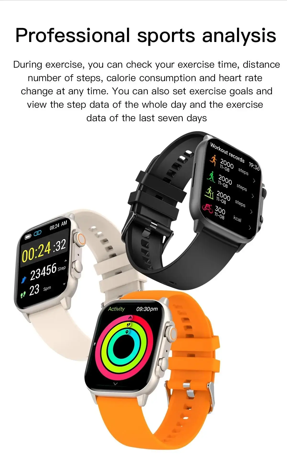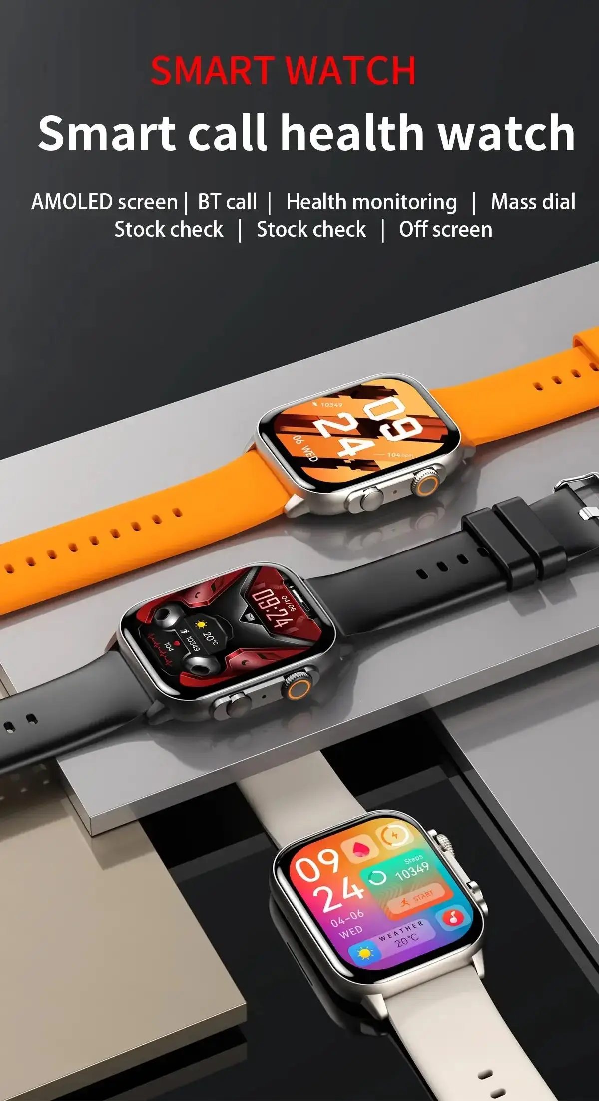 Recursos de Saúde: Monitoramento Contínuo de Frequência Cardíaca 24/7, Sensor de Oxigênio no Sangue, Rastreador de Sono, Respiração, Lembrete para Beber Água, Lembrete para Mover, Ciclo Fisiológico Feminino, Suporte para APP de Saúde. Recursos de Vida: Atendimento de Chamadas Bluetooth, Discagem Bluetooth, Lembrete de Mensagens, Despertador, Temporizador, Clima, Controle Remoto de Música, Controle Remoto de Câmera, Encontrar Telefone, Calculadora, Mostrador Dinâmico de Relógio, Mercado de Mostradores de Relógio (100+ mostradores de relógio), mostradores de relógio personalizados (você pode definir a imagem que deseja como mostrador de relógio), Configurar o tempo de desligamento da tela, Modo Não Perturbe. Quatro Interfaces do Usuário Integradas. Recursos de Esportes: Rastreamento de Atividade ao Longo do Dia (Passos, calorias, distância), à Prova d'Água IP68, 106 Modos de Exercício, Relatório de Dados Esportivos. Smartwatch AMOLED O Smartwatch tem um design elegante e durável, utilizando materiais de liga de zinco de qualidade militar. Esse material leve, porém robusto, aprimora a estética geral do relógio, tornando-o a combinação perfeita de estilo e durabilidade. Design de dois botões, onde o botão inferior pode ser personalizado para atender às diversas necessidades funcionais dos usuários. Alimentado por Tecnologia Avançada: Equipado com o chip líder da indústria Realtek 5th RTL8763EWE-VP, o Smartwatch pode reduzir o consumo de energia em 22% e aumentar o desempenho em 25%. Além disso, o C81 incorpora a mais recente tecnologia de sensor de oxigênio no sangue, utilizando luz vermelha para medições mais precisas. Isso garante uma experiência de Smartwatch suave, eficiente e confiável como nenhuma outra. Tela AMOLED Ultra: Experimente a primeira tela AMOLED de 2,0 polegadas e resolução de 410*502 pixels em um smartwatch, com um contraste de tela de 10.000, e realmente restaura várias cores. A tela do Smartwatch não é apenas maior, mas também mais clara, garantindo que cada detalhe seja nítido e fácil de ler. Também apresentando uma tela sempre ativa (AOD), você pode verificar rapidamente e facilmente as horas sem acordar o relógio. Customização Inigualável: Personalize seu Smartwatch escolhendo um mostrador de relógio no mercado de mostradores do aplicativo. E ele suporta mais de 100 modos esportivos. Quer esteja acompanhando sua rotina de fitness diária ou se vestindo para impressionar, este smartwatch tem você coberto. Vida Útil Prolongada da Bateria: Com até 7 dias de vida útil da bateria com uma única carga, o Smartwatch garante que você nunca será pego de surpresa. Mantenha-se conectado, acompanhe sua aptidão e aproveite seus recursos favoritos sem a inconveniência de recarregar constantemente. Eleve seu estilo, aptidão e vida diária com o Smartwatch.